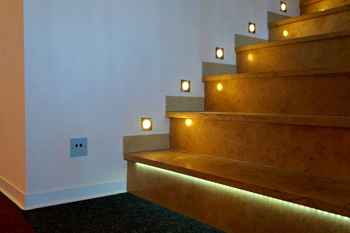 - Безпека. Правильне підсвічування сходів мінімізує ризик падінь і травм у темний час доби.